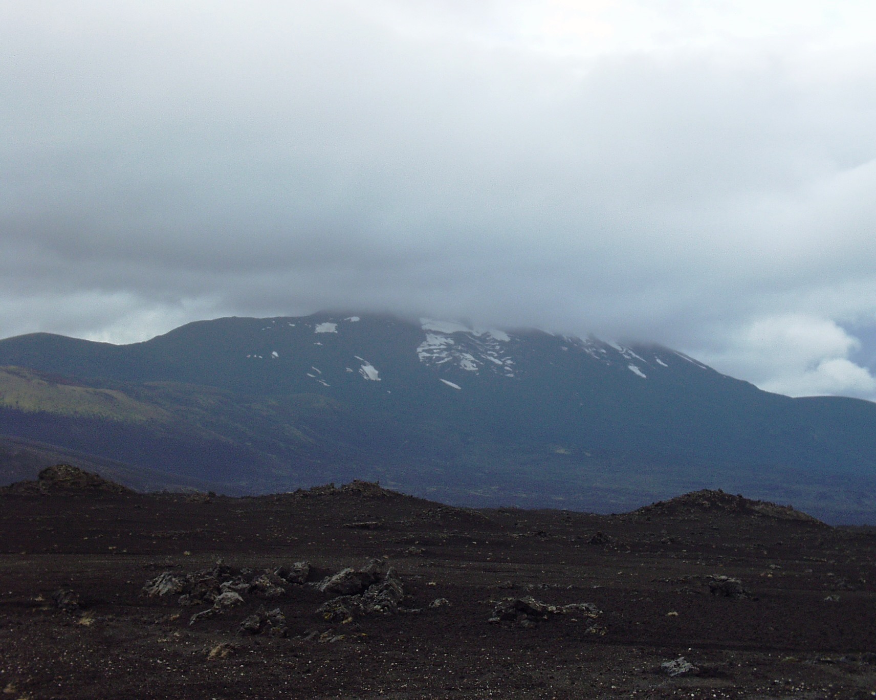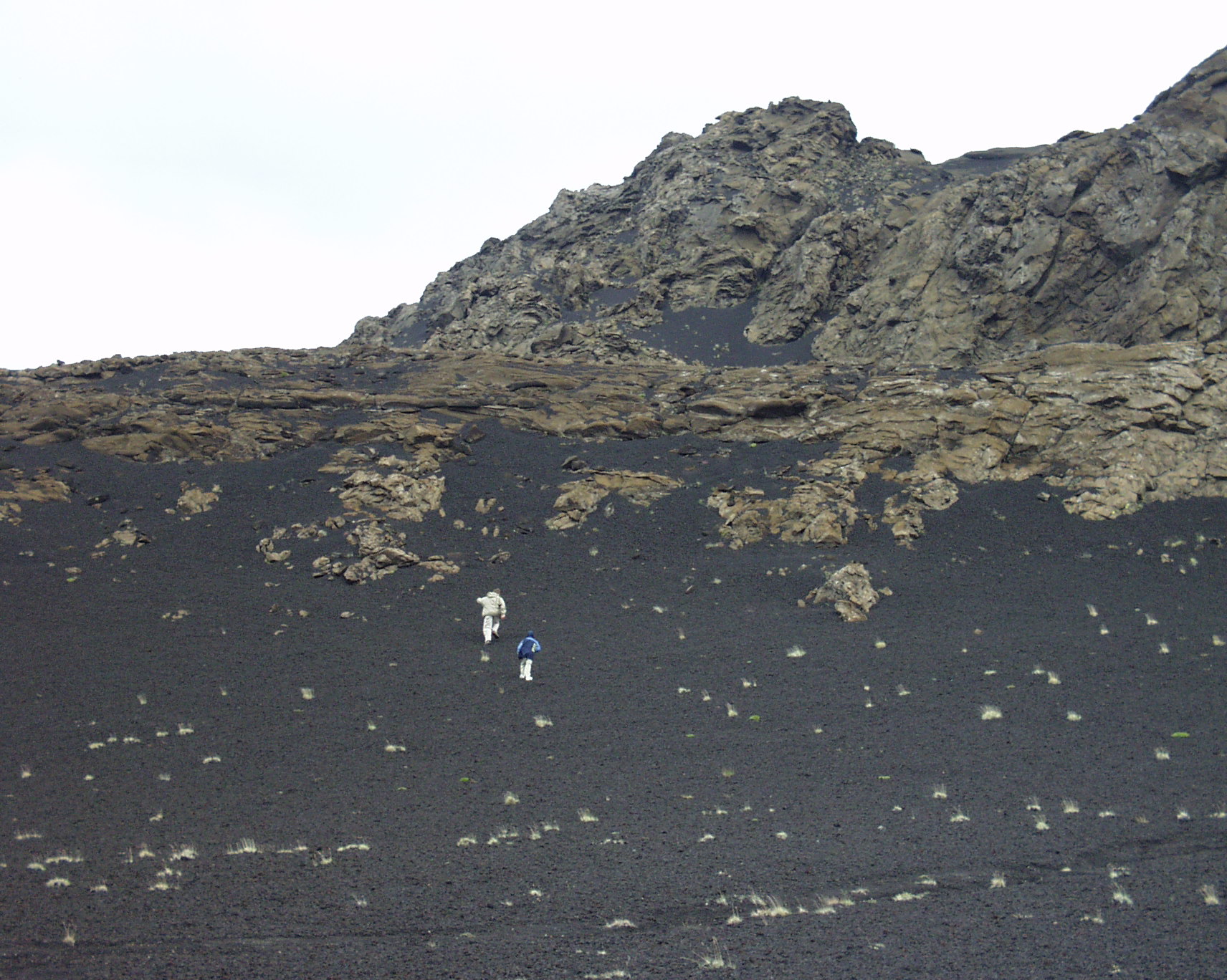 the two little dots are Tom & Geoff scrambling over the lava field.