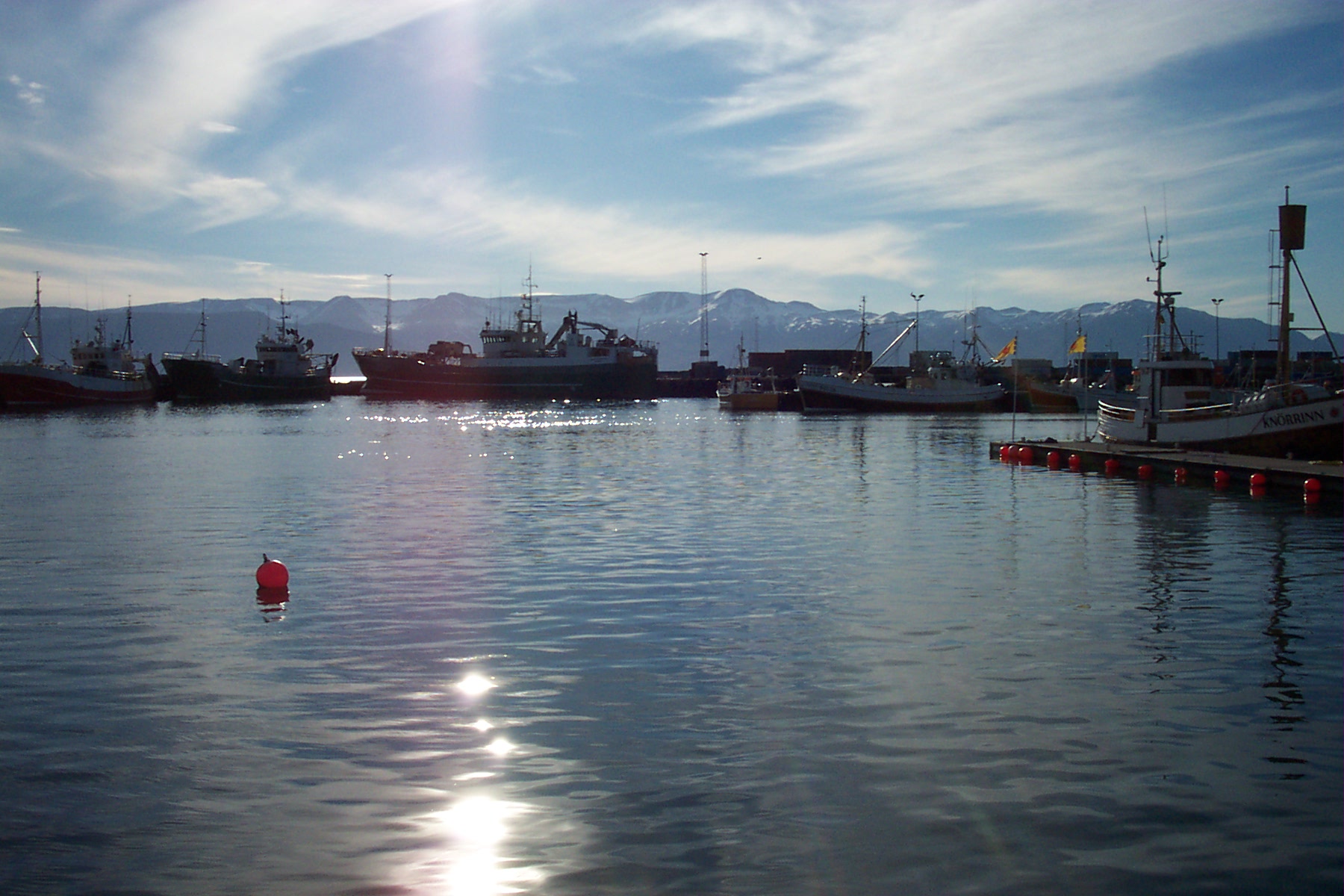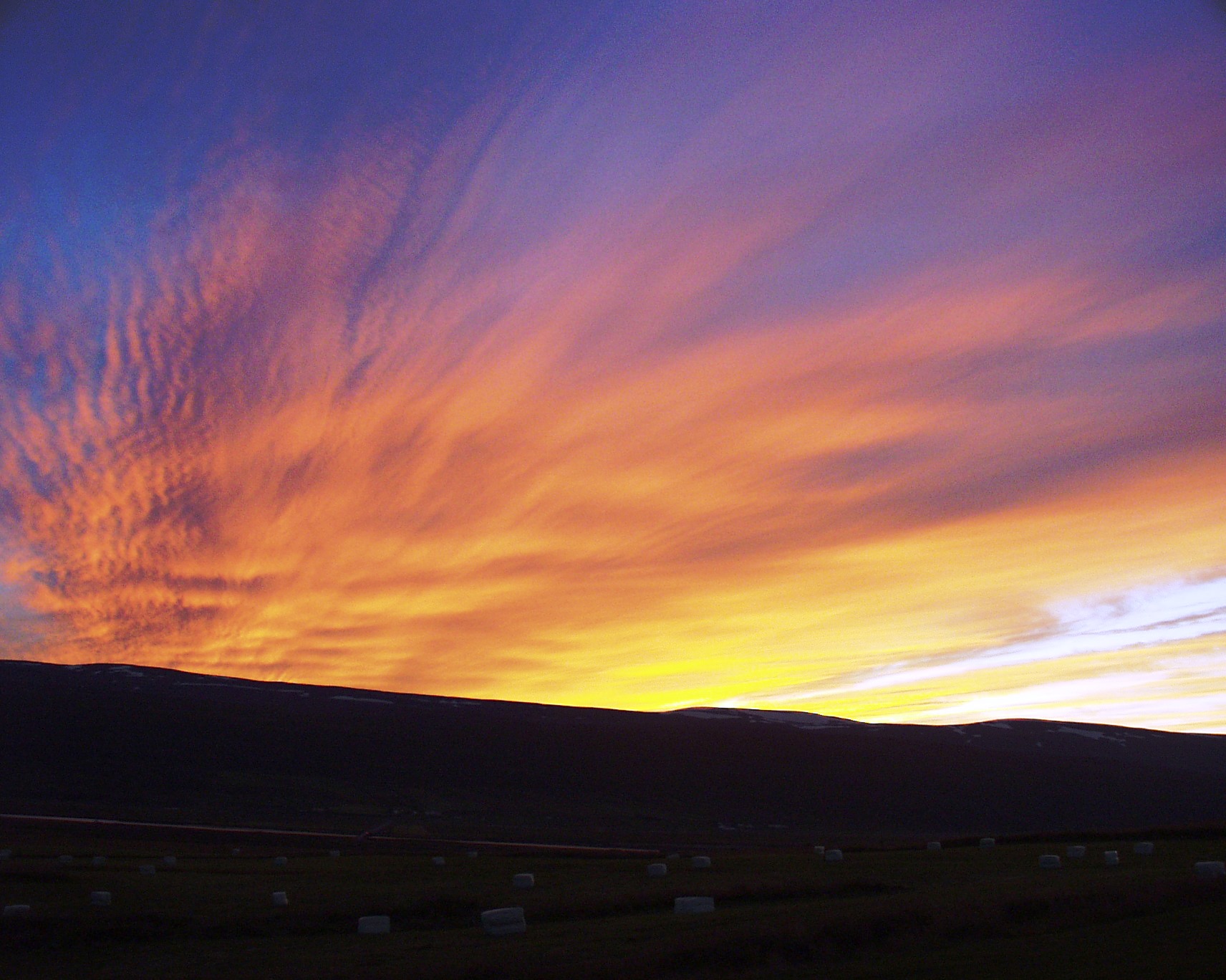 The entire afternoon was spent completing the long section of the drive. We finally arrived in Akureyri, Iceland's second largest and most difficult to pronounce city a little after 5pm. It looks like a town of about 4-5000 people, with the most notable enterprises being a university and a small airstrip. Since it was late Sunday afternoon, there wasn't much to do except eat dinner and look in the windows of the closed shops. The guesthouse manager was only expecting 4 people so we had to protest a little bit in order to get 5 beds, which he eventually coughed up after Lynn showed that she could be just as testy as he could. But now that we are fed and settled, things feel quite serene. We noticed on a map that the arctic circle is only a few miles off the coast here, and I was just barely able to make it out with binoculars.